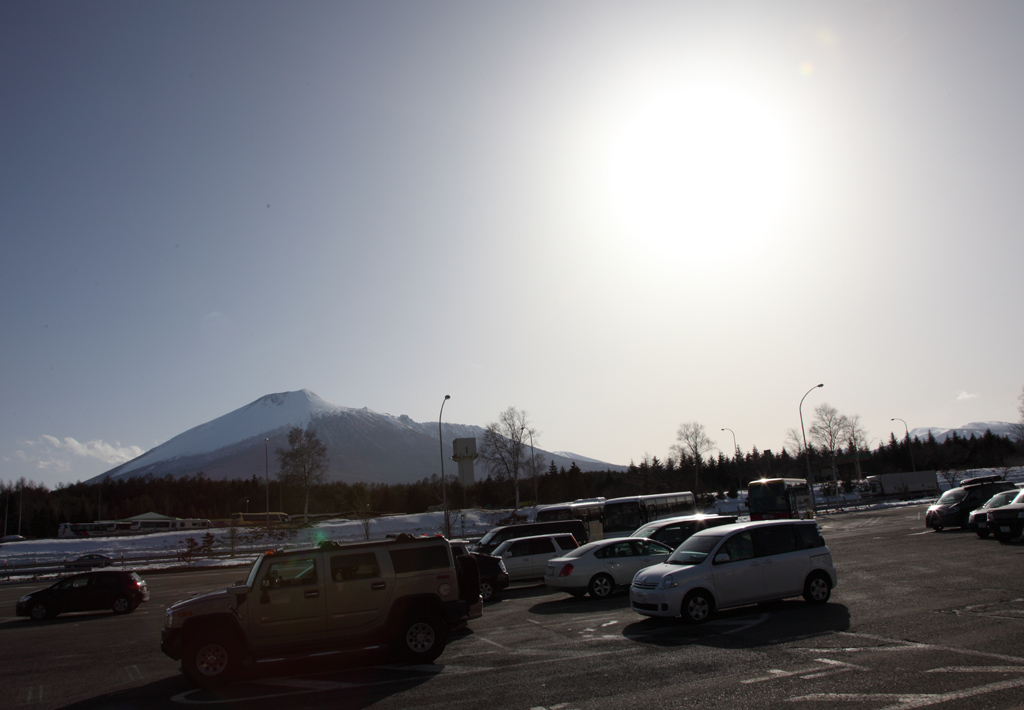 少し立ち位置をかえてみました。逆光から入る光りが山の残雪に反射するのを