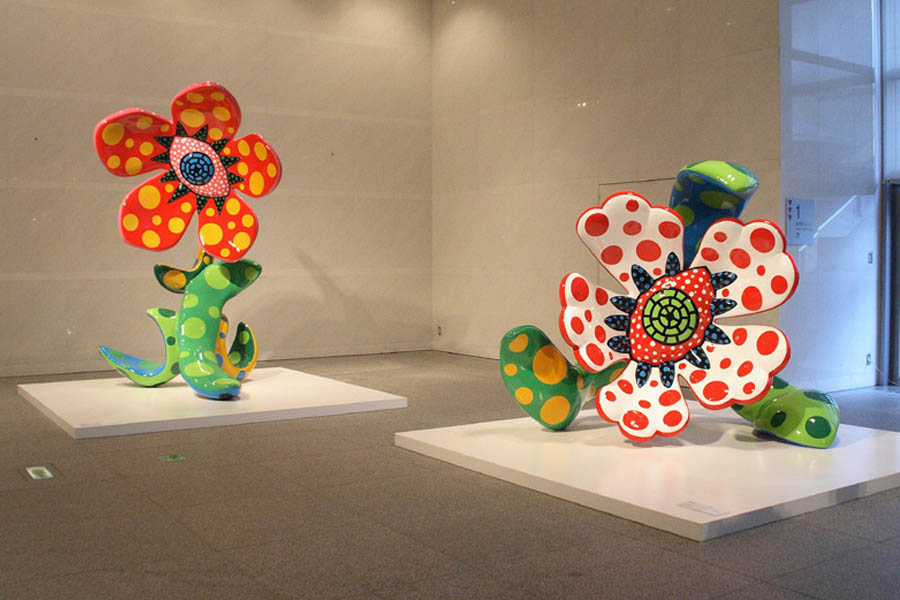 | 草間 彌生(Yayoi Kusama) 1929長野県生まれ/東京在住 『真夜中に咲く花』 ポスターや街角で見かけるトリエンナーレの案内などで一番よく目にするのが草間彌生さんの作品です。色とりどりの配色で、水玉が勢いよく目に飛び込んできます。形状や色づかいから、明るく元気なイメージを抱きますね。 | |