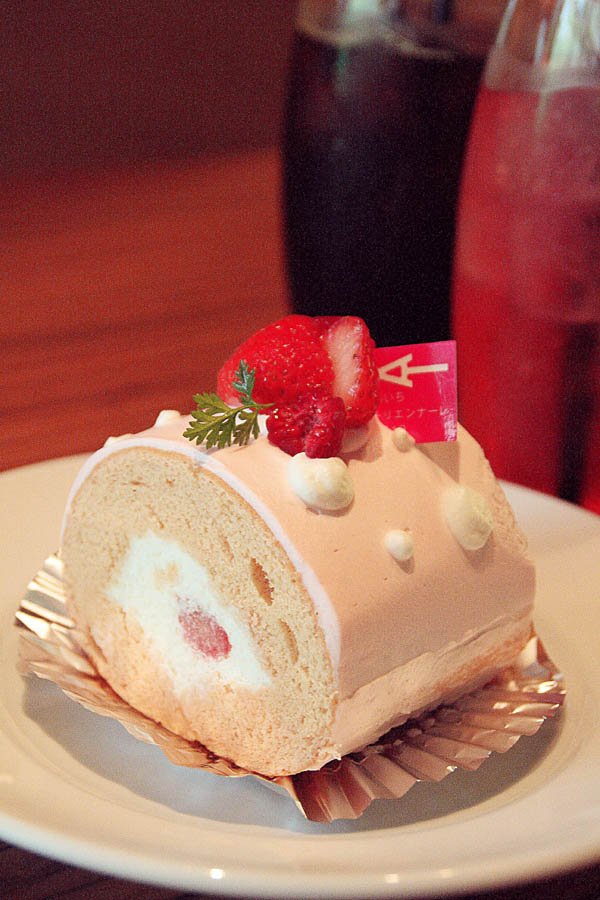 | 『トリエンナーレロール』 あいちトリエンナーレ2010の展示会場である愛知芸術文化センター10Fにあるレストラン&カフェ『WOLF GANG PUCK』では期間中のみ『トリエンナーレロール』を販売しています。トリエンナーレに来たなら、これは食べなきゃならないでしょう! この『トリエンナーレロール』は堂島ロールで全国的に有名なパティシュリー モンシュシュがあいちトリエンナーレの為に制作したイチゴのケーキで、テーマカラーのマゼンタを基調としている可愛らしい見た目が特長です。 さて、お味のほうは・・・・もちろん美味しい!さすがモンシュシュと言ったところでしょう! 絶妙です! 表面を覆ったイチゴクリームと調度良い舌触りのスポンジ。そしてこれぞモンシュシュと言わんばかりのクリーム! お代わりを頂きたくなりました! 単品420円(税込)でイートインのみの扱いとなります。数量限定ですので、トリエンナーレを観覧されて一息ついてたらなくなっちゃうかも? お早めにどうぞ。 |
