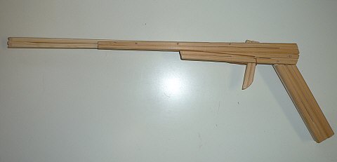 このゴム銃のスゴイところは、割り箸と妻楊枝のみで作られて居ること。
