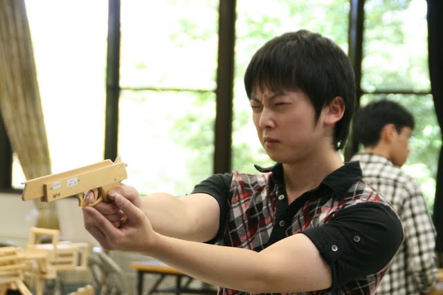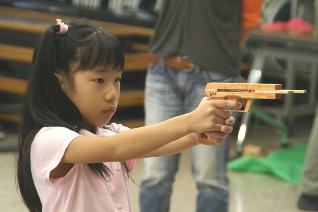 大人も子供もハンデなく競技に参加できるのがこのゴム銃の魅力。