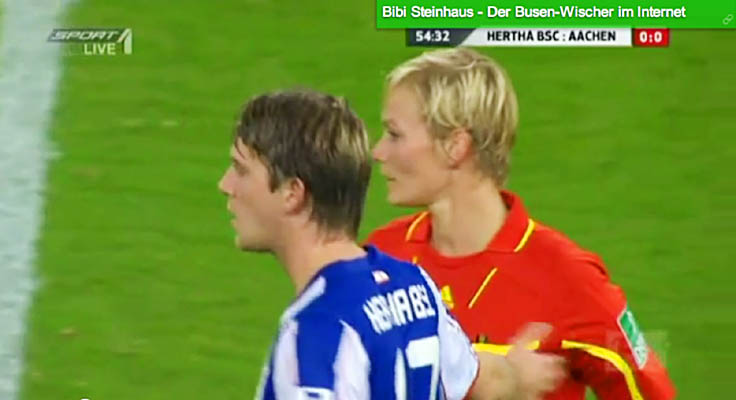ドイツブンデスリーガの美人審判が試合中にオッパイを触られるハプニング!