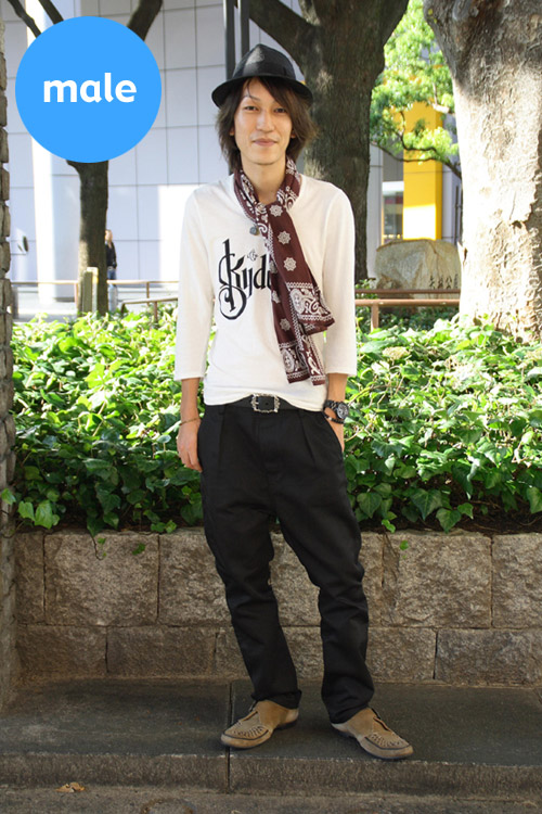 M012 名前:AZZURE 年齢:26歳 身長:178cm 職業:某店員 今日のポイント:ストール+サルエルパンツ 今、欲しいもの:時計 一言お願いします:スナップされちゃいました! |