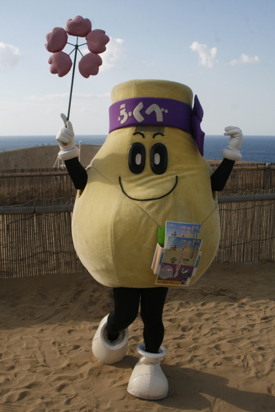| 特産のらっきょうをPRするために旧福部村時代に誕生。合併後も鳥取市のキャラクターとして活躍中。手に持っているのはらっきょうの花です。 |