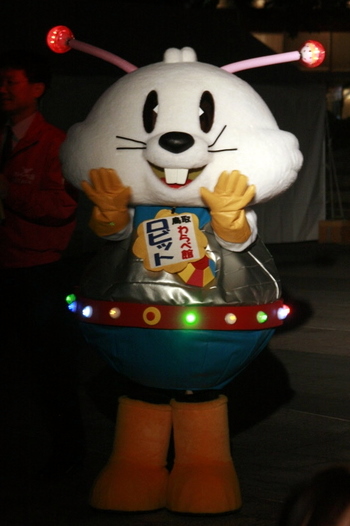 | 市民参加型地方博として大成功を収めた「'89鳥取国際おもちゃ博覧会」のマスコットとして誕生。閉幕後はわらべ館のイベントで活躍中。 今の着ぐるみは耳の先とベルトの周りがLEDで光ります。 |
