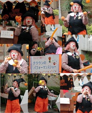 女子のクラウンさんが お手玉や 風船や ジャグリングを披露してたよ。