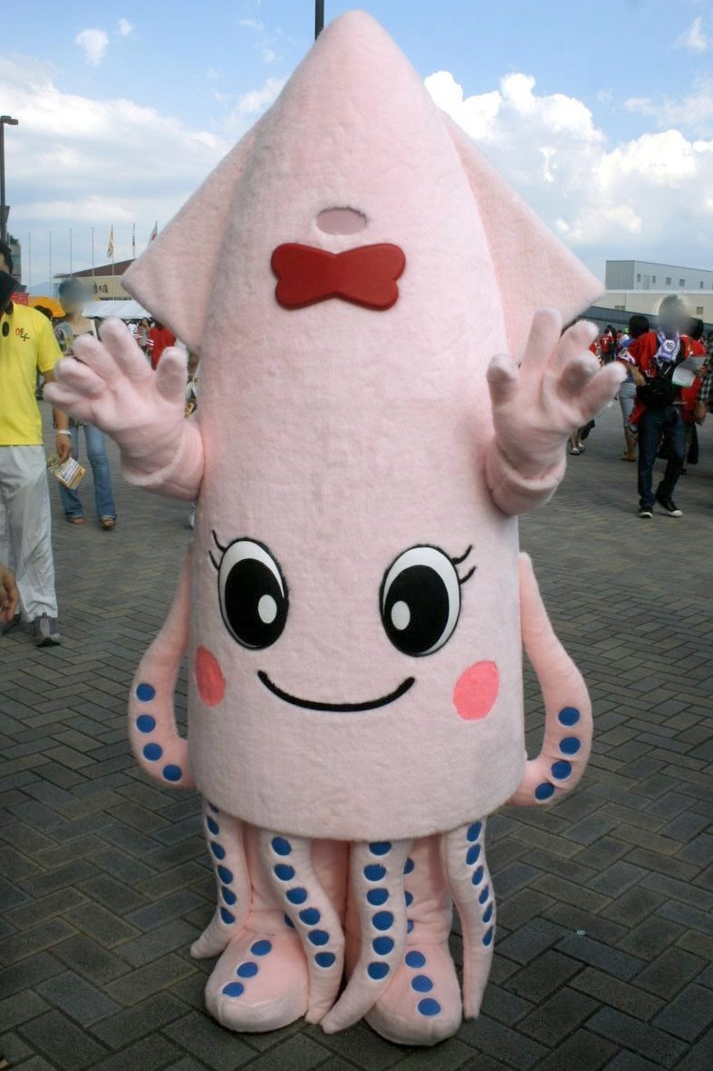 | 呼子イカ祭りのキャラクターとして誕生。2008年に呼子のイカまつりでケンちゃんと出会い、夫婦になりました。今までは祭りのたびに段ボールで作り直していましたが、2010年7月に発泡ウレタン製の体にリニューアル。各地のイベントにも顔を出すようになりました。 |