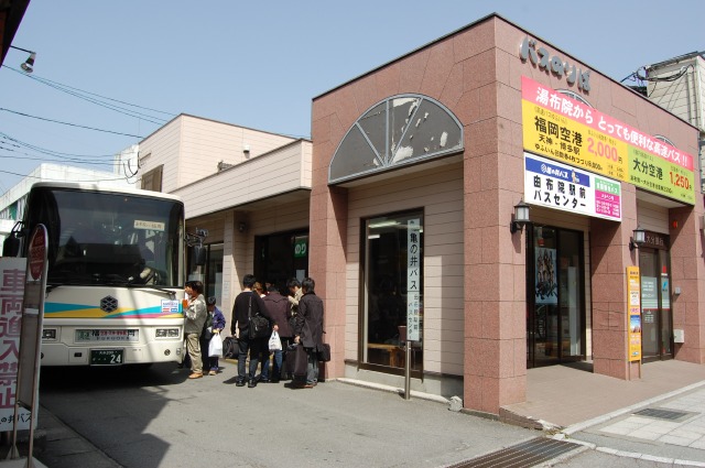 写真左は九州横断バス、写真右は由布院駅前バスセンターです。