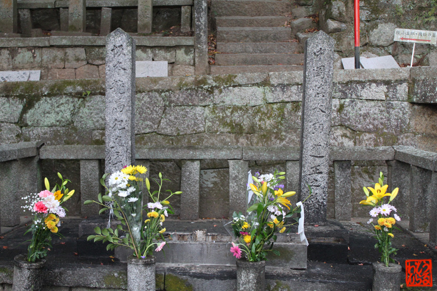 ご存知、坂本龍馬と中岡慎太郎のお墓です。この下に彼らの遺体が埋葬されています。