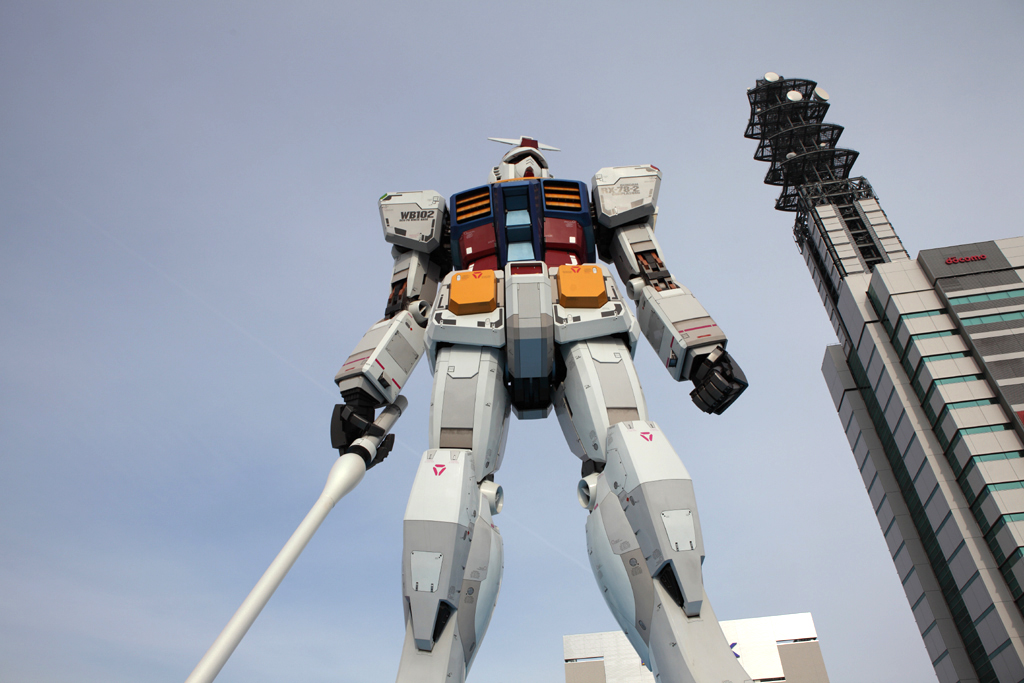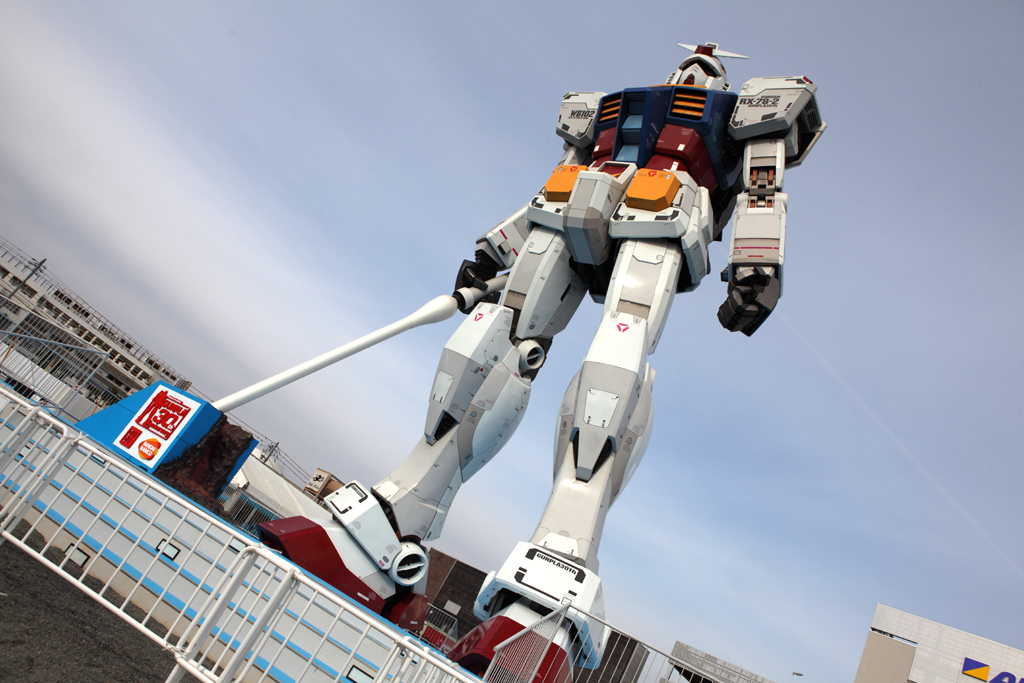 ガンダム大地に立つのイメージと、横のビルの大きさの対比をアクセント