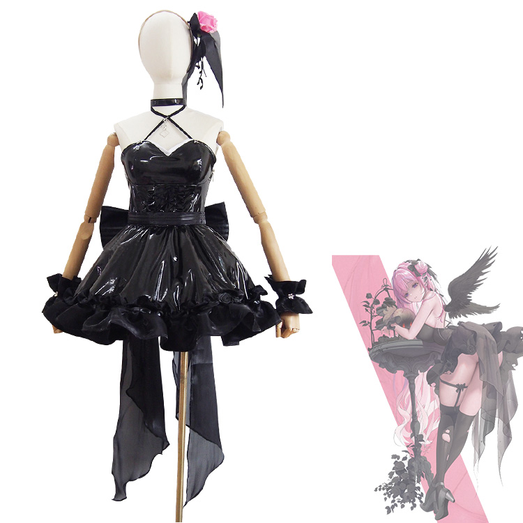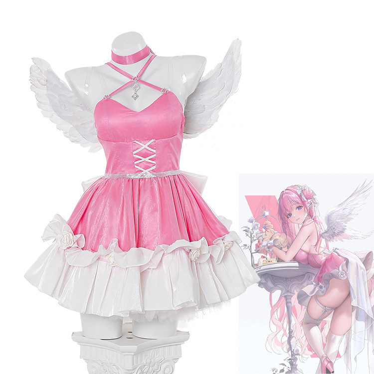 セット内容:チョーカー、髪飾り、ワンピース、背部蝶結び、手首飾り、花飾り、靴下、翼