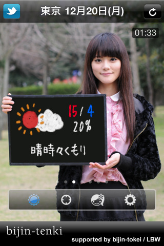 美人時計の続編!! "天気" と "美人" とを組み合わせた癒し系天気アプリ。