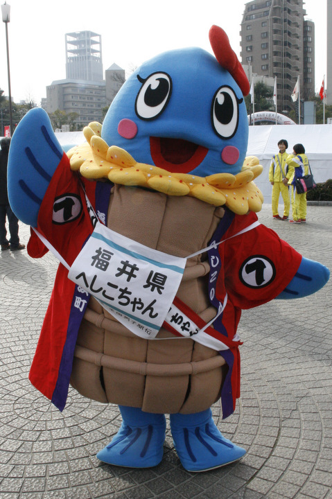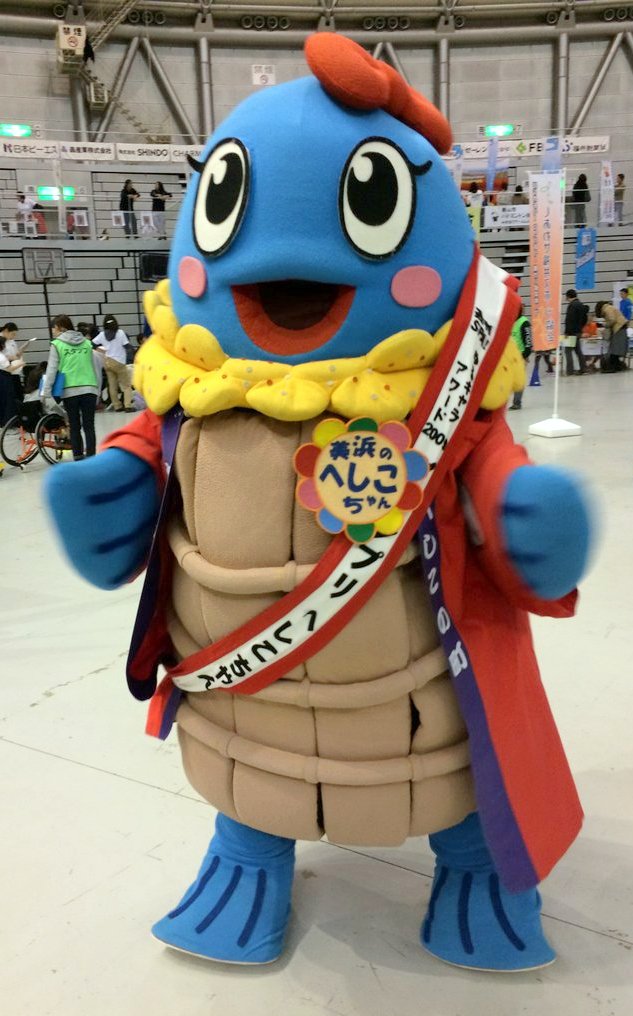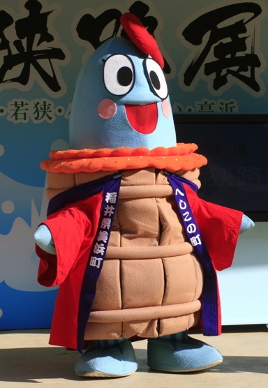 | 2006年に従来からいた「漁師の浜さん」「ふぐの美ーちゃん」に続くキャラクターとして登場。 昭和58年生まれの秋鯖で、コシヒカリ糠男という彼氏との濃密な?付き合いで立派なへしこになりました。 2010年に2代目の着ぐるみ誕生。イラストに近い表情になりました。 |