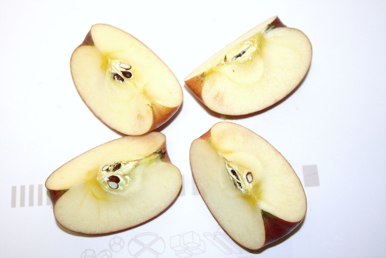 たまねぎやトマトなどのへたや根元を取り、縦半分に切ってから放射状に切っていく方法。