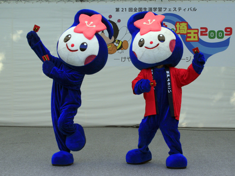 | 2006年の坂戸市制30周年を記念して誕生した坂戸よさこいのマスコットキャラクター。 坂戸市の頭文字「S」をモチーフに鳴子を持って元気に踊っています。イラストでは着ぐるみの「頭」に当たる部分のみ。 |