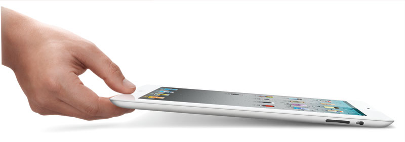 ディスプレイはこれまでと同じく9.7型のIPS液晶(1,024×768ピクセル)を搭載し、マルチタッチに対応。モデルはWi-Fi(無線LAN)、Wi-Fi+3G(無線LAN+携帯電話回線)の2種類で、内蔵フラッシュメモリはそれぞれ16GB、32GB、64GB。全部で6モデルの展開となっている。