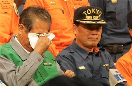 福島第1原発事故で放水活動を行って帰京した東京消防庁ハイパーレスキュー隊の報告会が、東京都の消防学校で行われた。石原慎太郎知事は救国の英雄達を前に感極まり、涙を流して謝辞を述べた。