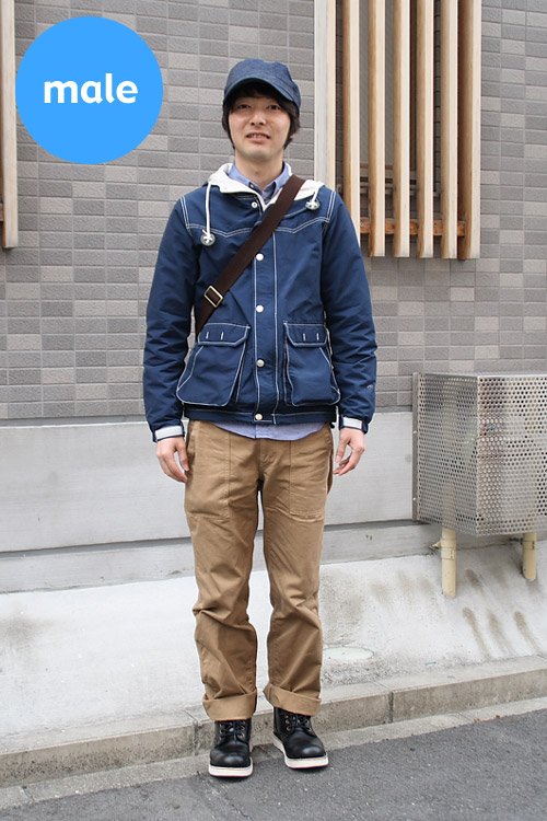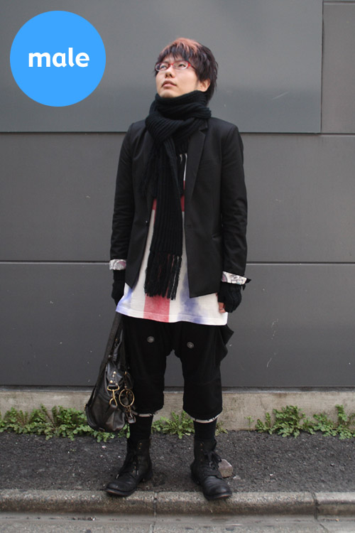 M053 名前:トモ 年齢:26歳 身長:167cm 職業:学生 今日のポイント:ジャケットの裏地・七分のサルエル 今、欲しいもの:インナー 一言お願いします:今年4月からモード!! 0084さん服の製作よろしくネ! |