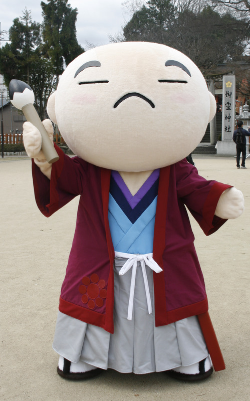 | 信長・秀吉・家康、三英傑の家臣として活躍した細川幽斎の没後400年を記念し、創立30周年を迎えた舞鶴商工会議所青年部が舞鶴田辺城と細川幽斎での町おこしを企画。一般公募で生まれたキャラクターが「ゆうさいくん」 戦国武将でありながら歌人でもあるため、手には筆を持っています。 3月12日に東舞鶴駅での新型287系特急「まいづる」の出発式に登場予定だったが震災で中止となり、4月3日福知山市で行われた「東日本大震災復興祈願祭withゆるキャラ」で初めて一般にお披露目となりました。 |