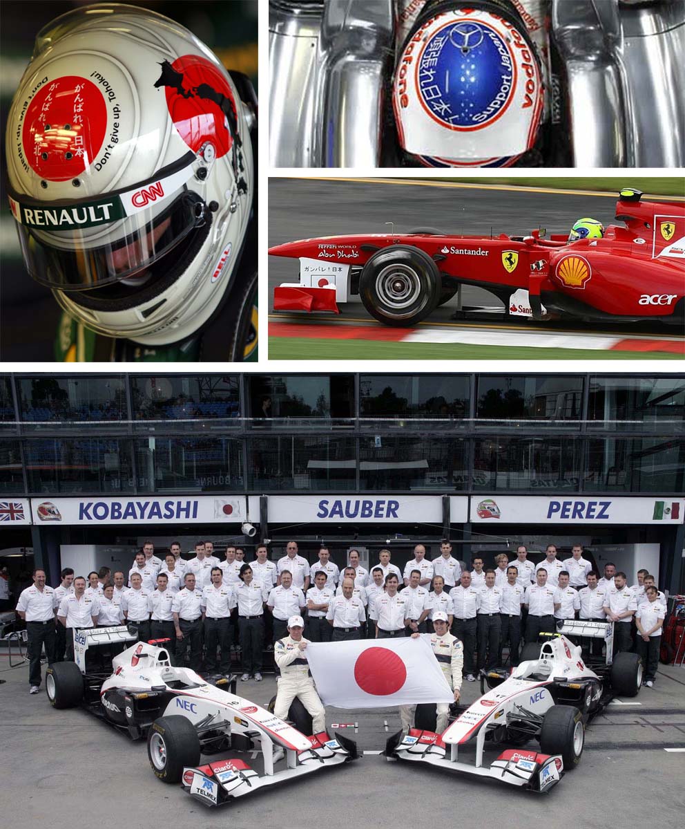 F1世界選手権、開幕戦オーストラリアGP。3月11日に起こった東日本大震災の惨状を、モニターを通して目の当たりにした各チームは、すぐさま日本へのメッセージを送る準備にとりかかった。