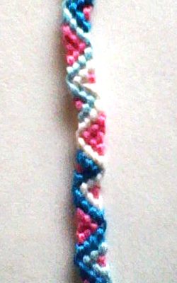 3色のジグザグ模様が並ぶミサンガ
