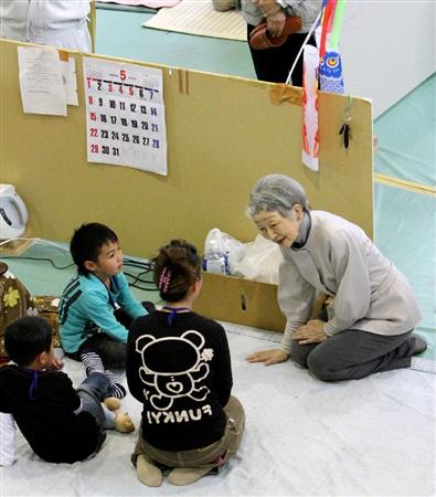 福島市の体育館で、陛下は南相馬市から子連れで避難する母親に「こうした事故があると、小さいお子さんがいると心配ですね」と話された。皇后さまは南相馬市の高校2年の男子生徒に「各地に友人が散り散りになってどれほどお辛いことか」と気遣われた。