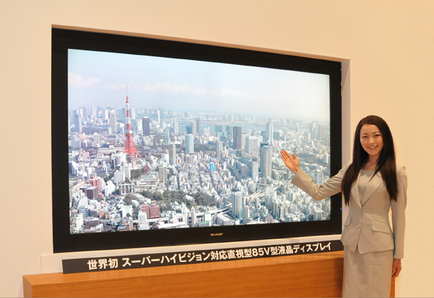 シャープとNHKは、世界初のスーパーハイビジョン対応直視型85V型液晶ディスプレイを開発したらしいです。スーパーハイビジョンとは、従来のハイビジョンの16倍、横7680画素×縦4320画素の3300万画素を表示。ディスプレイの大きさは横約1.9m×縦約1.05mの85V型の中に超精密な画像が埋め込まれています。NHKは2020年のスーパーハイビション試験放送を目指して開発を進めるとの事です。