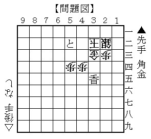 2筋に逃がしてしまうと捕まりません。 持ち駒の角の威力を使って詰まして下さい。 初手(1手目)を答えて下さいね。 (−||−)合掌 ワタシニ ヒラメキヲ