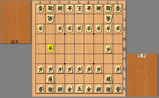 先手、後手ともにお互いの飛車先の歩を突きあったところです。 さて、次の一手は?