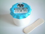 木のヘラで食べるヨーグルトっぽい味の駄菓子です。