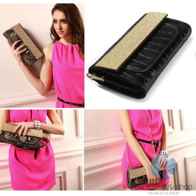 クロコ型押し財布へび柄財布 JANNY DANNU チェーン付き 2WAY長財布